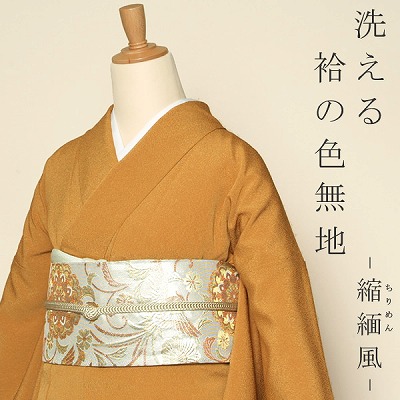 Polyester color plain M/L golden brown chirimen washable
